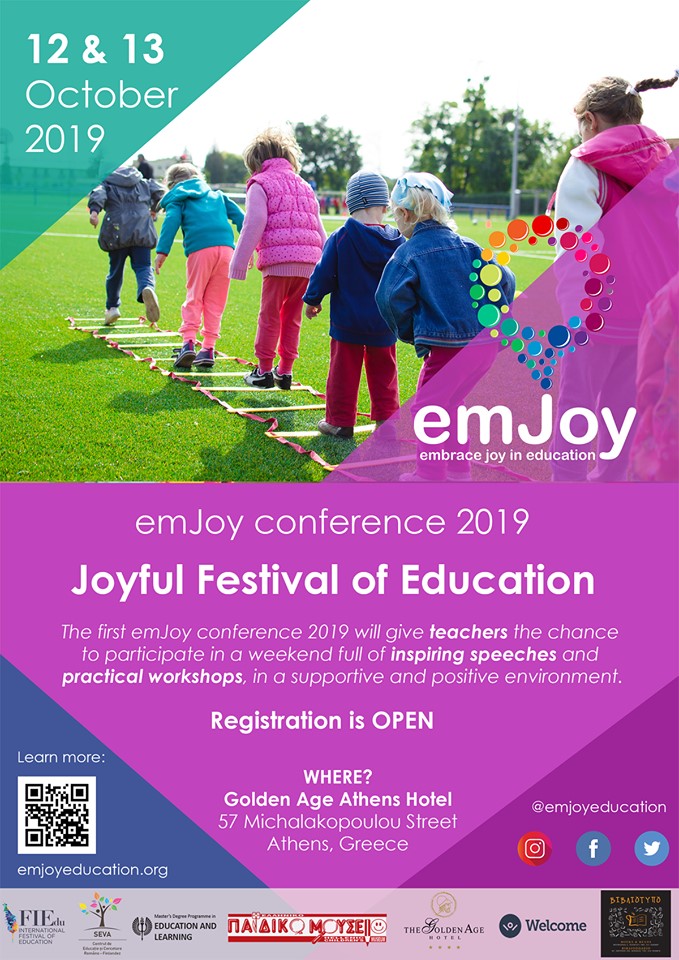 Το Ελληνικό Παιδικό Μουσείο συμμετέχει στο 1ο διεθνές συνέδριο για εκπαιδευτικούς «EmJoy Conference 2019: Joyful Festival of Education που θα πραγματοποιηθεί στις 12 & 13 Οκτωβρίου 2019, στο Golden Age Hotel of Athens.